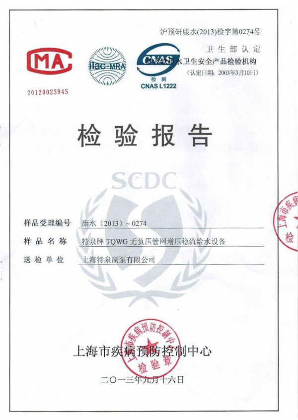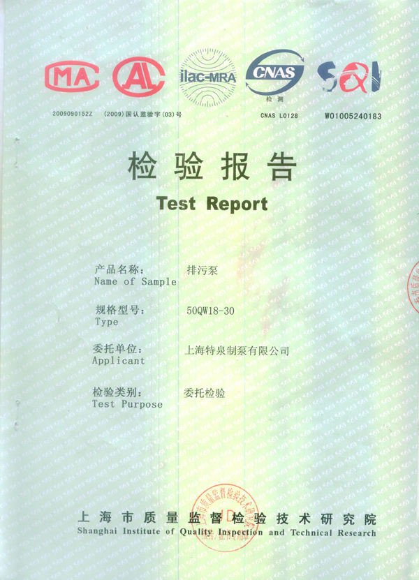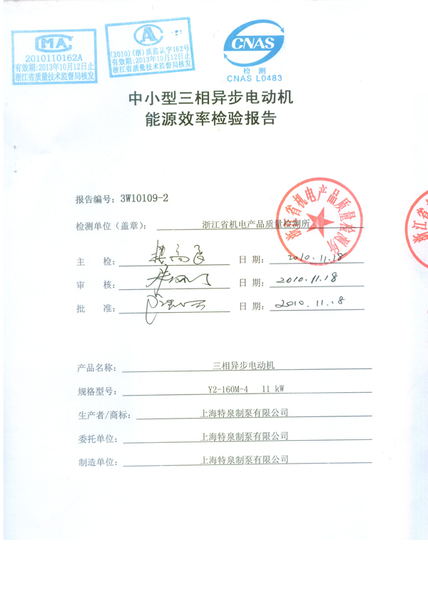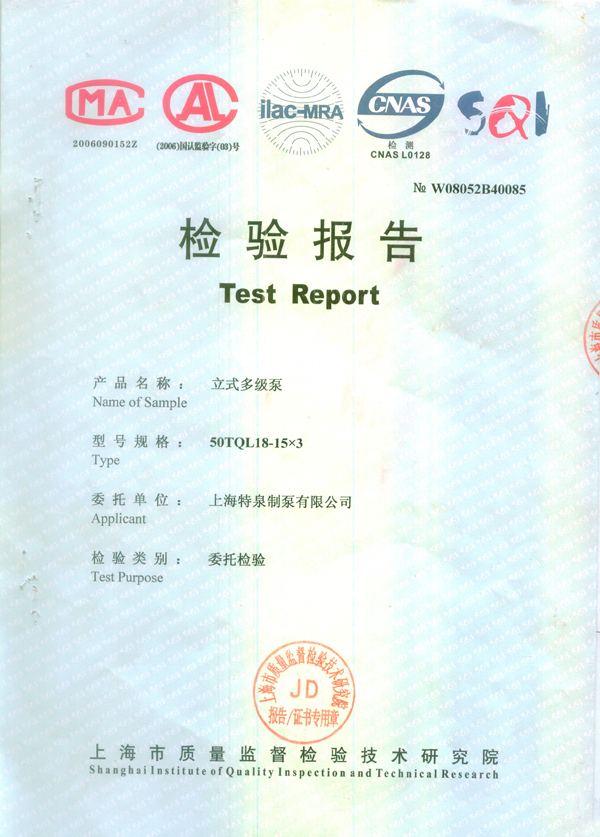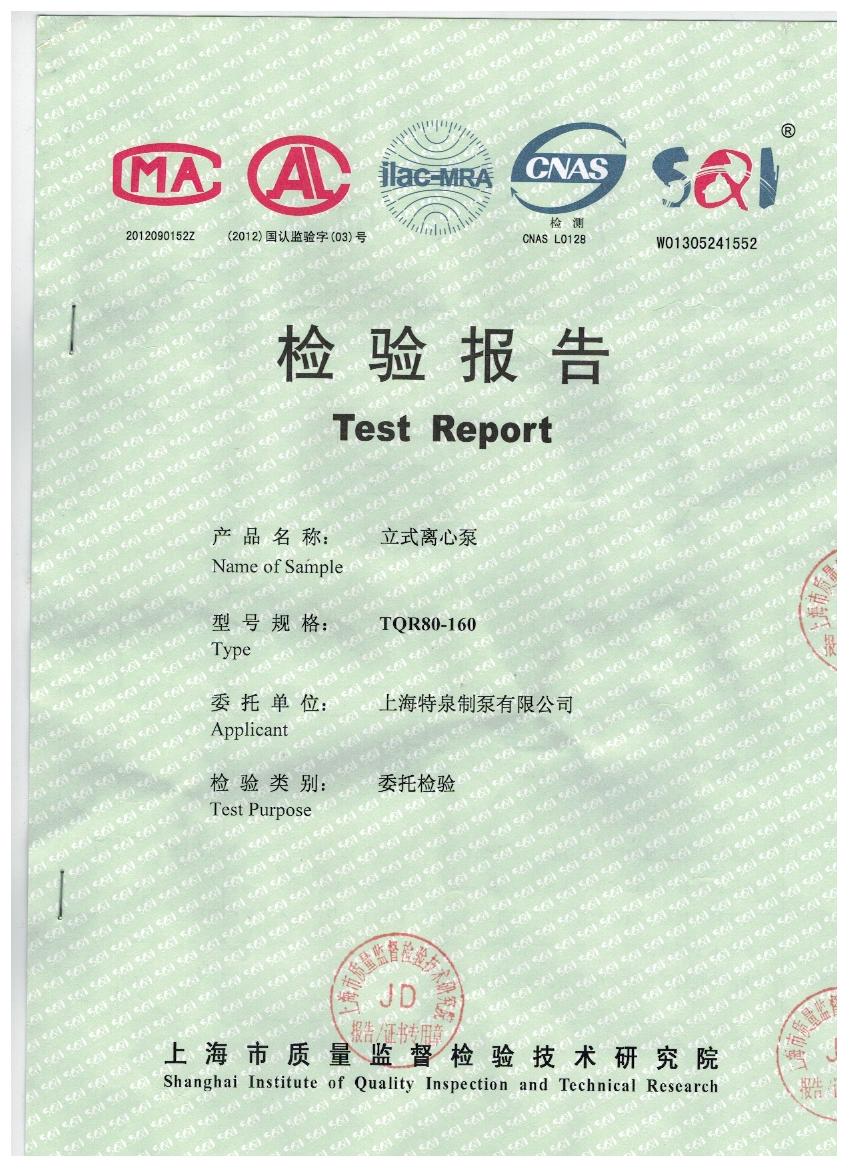 立式離心泵檢驗(yàn)報告 立式多級泵檢驗(yàn)報告 中國時代誠信示范單位