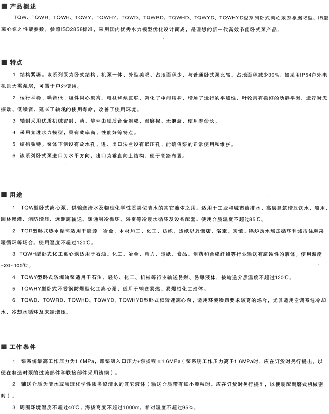 TQW單級單吸臥式離心泵