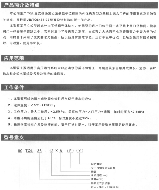 產(chǎn)品展示 您的位置:首頁(yè) - 產(chǎn)品展示 - 離心泵系列 - TQL立式多級(jí)離心泵