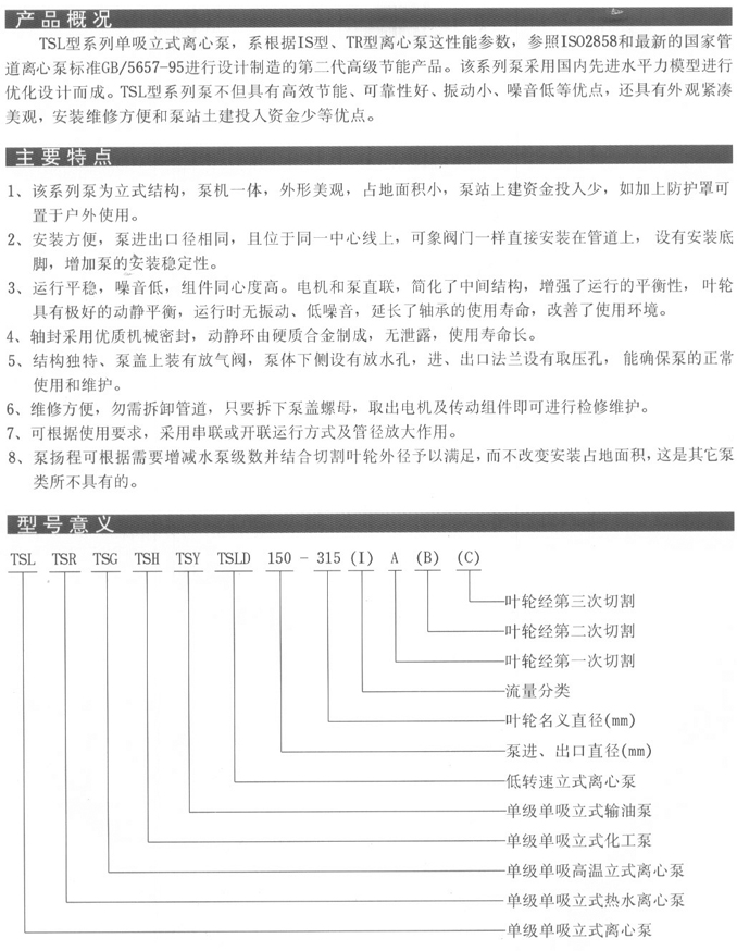 TSL單級單吸立式離心泵